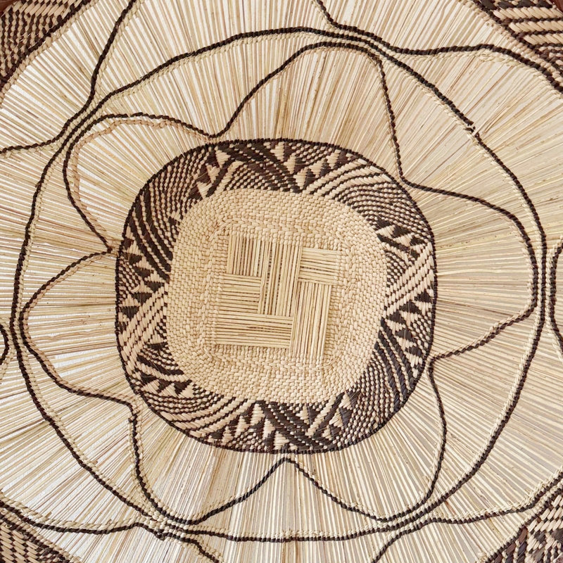 Our baskets come with loops on the back so they are ready to hang! Woven from wild grasses, this beautiful basket is made by the Tonga people in the northern Zimbabwe region of Binga. They were originally used for winnowing grains, but have been quite popular for home decor. Each has a loop on the back for hanging and is the perfect addition for a wall collage or as a solo art piece.