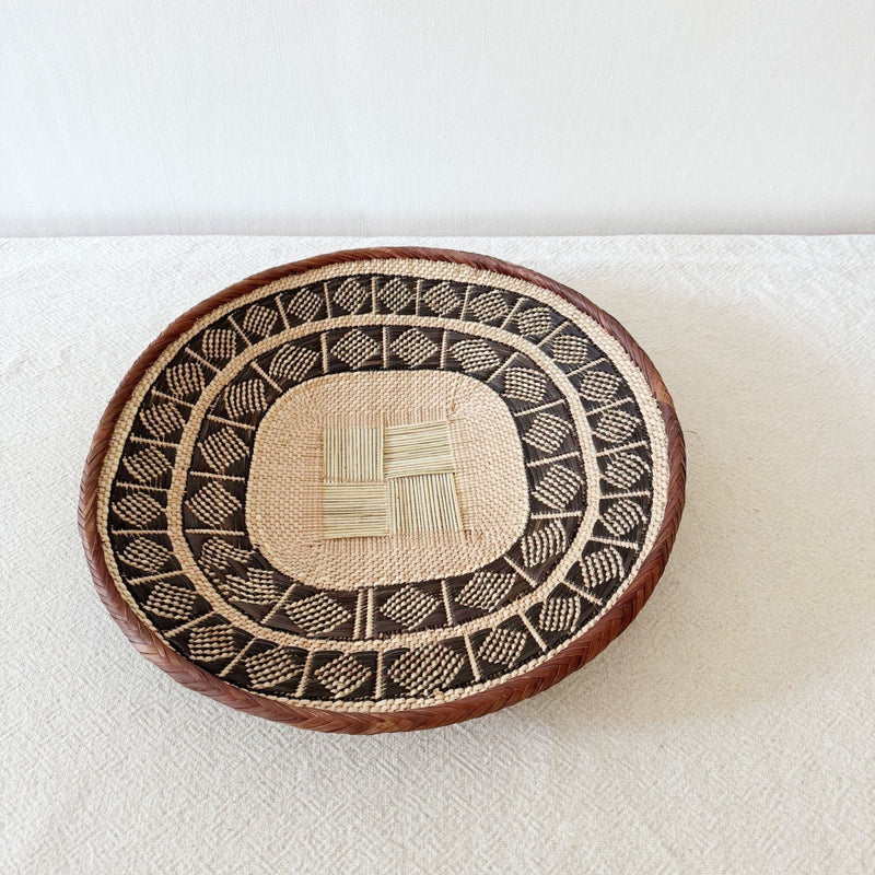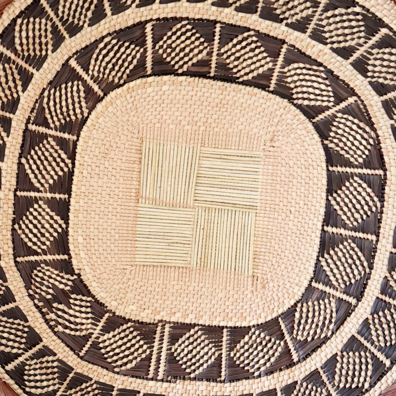 • Our baskets come with loops on the back so they are ready to hang! Woven from wild grasses, this beautiful basket is made by the Tonga people in the northern Zimbabwe region of Binga. They were originally used for winnowing grains, but have been quite popular for home decor. Each has a loop on the back for hanging and is the perfect addition for a wall collage or as a solo art piece.