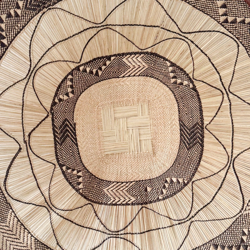 • Our baskets come with loops on the back so they are ready to hang! Woven from wild grasses, this beautiful basket is made by the Tonga people in the northern Zimbabwe region of Binga. They were originally used for winnowing grains, but have been quite popular for home decor. Each has a loop on the back for hanging and is the perfect addition for a wall collage or as a solo art piece.