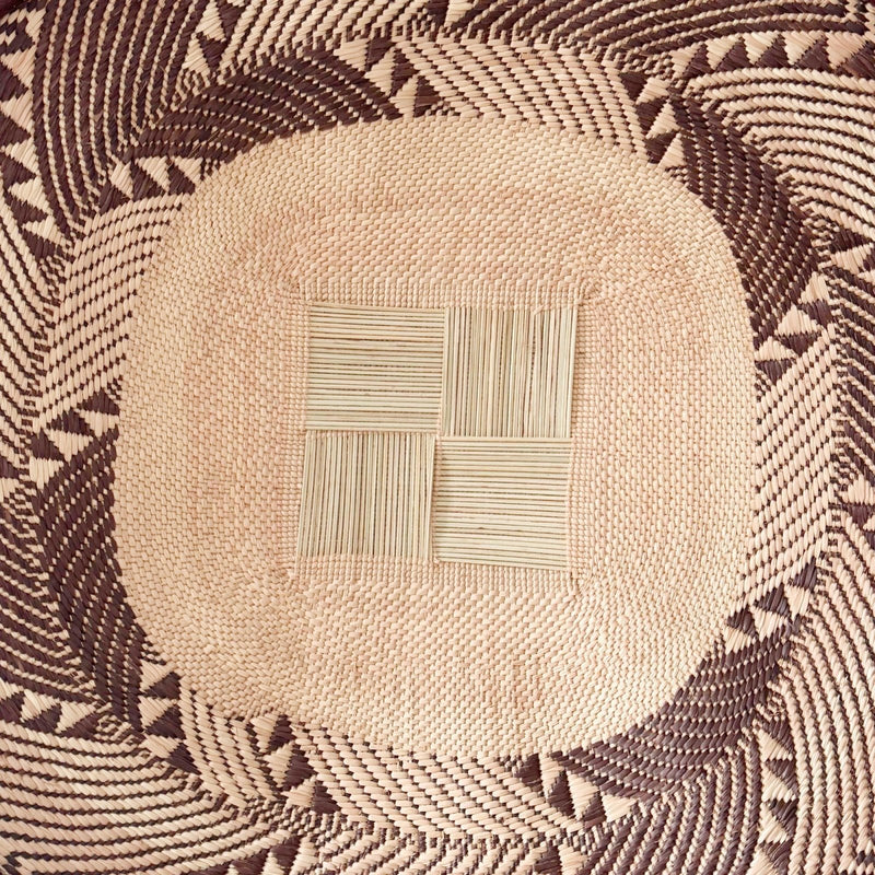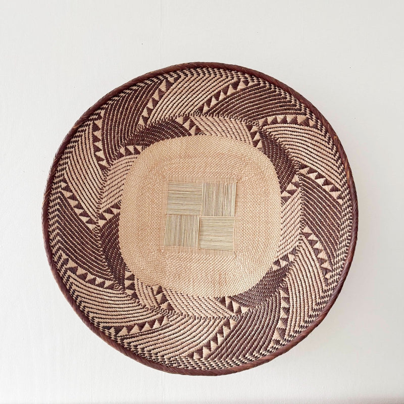 • Our baskets come with loops on the back so they are ready to hang! Woven from wild grasses, this beautiful basket is made by the Tonga people in the northern Zimbabwe region of Binga. They were originally used for winnowing grains, but have been quite popular for home decor. Each has a loop on the back for hanging and is the perfect addition for a wall collage or as a solo art piece.