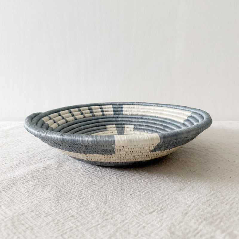 • This sisal, woven basket is approximately 12" in diameter and woven by our artisans in Rwanda. The women extract the sisal fibers from agave plants, then hand-dye and weave them into these beautiful works of art. The sisal is woven around sweetgrass, a fragrant grass with a subtle sweetness. Each basket comes with a string attached to the back so that you can hang it on the wall. In addition to making a beautiful table display, these baskets can also be hung as art. You can combine them with other baskets or works of art to make a feature wall collage.