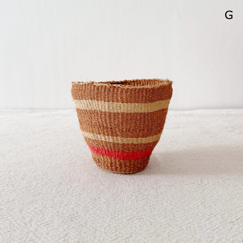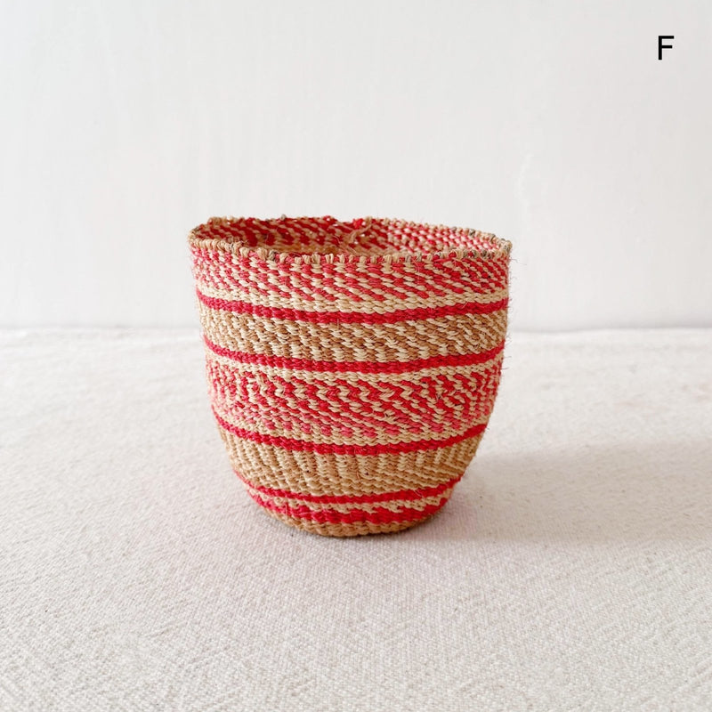 These sisal, woven baskets are handmade by a weaving cooperative in southeastern Kenya. The women hand-dye the sisal fibers and weave them into these beautiful works of art. This type of weaving is called fine weave because it is woven with very thin sisal twine, making it a more intricate, time-consuming design and a true work of art.